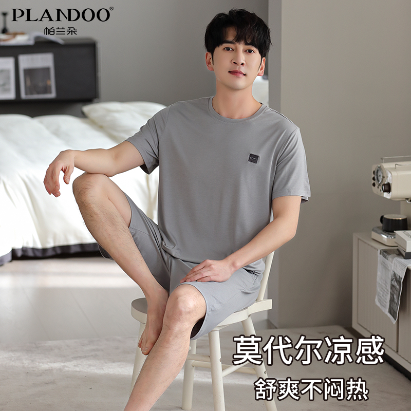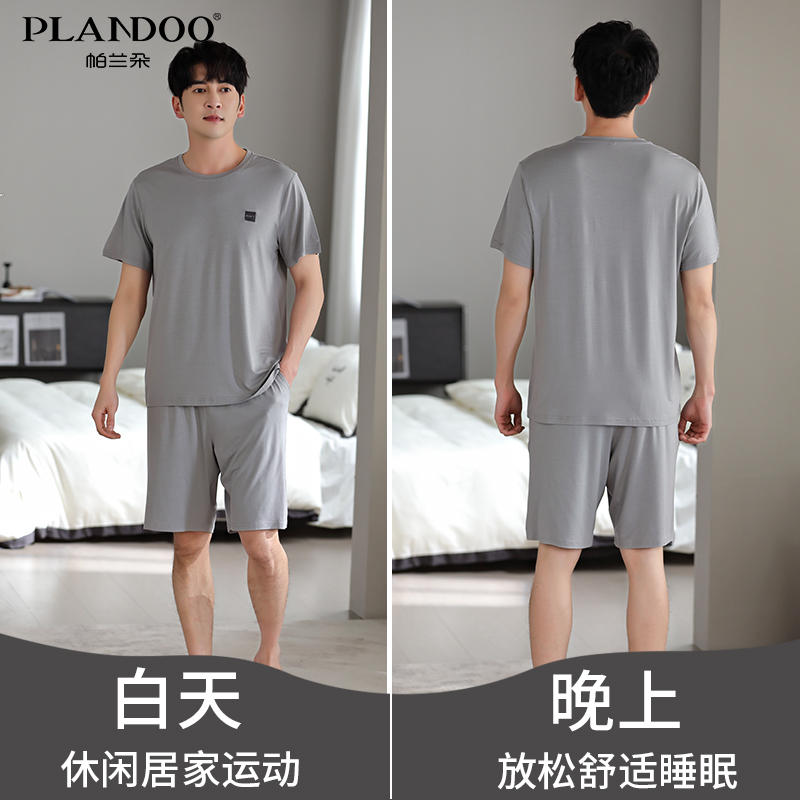 短袖 短裤 家居服男款 帕兰朵莫代尔睡衣男士 冰丝套装 夏款 薄款 夏季