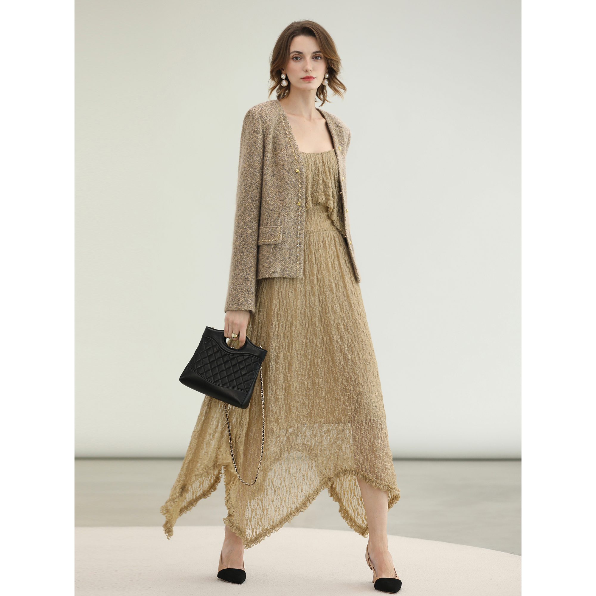 COCOBELLA轻奢蕾丝镂空吊带长裙女不规则大摆连衣裙FR3231