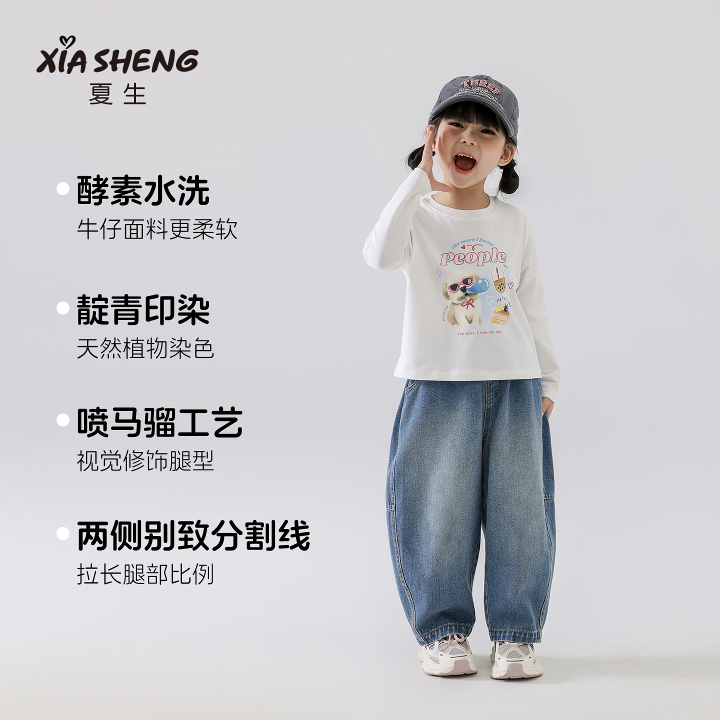 女童裤 儿童裤 子2025秋冬新款 牛仔裤 子 中大童直筒阔腿裤 植木童装