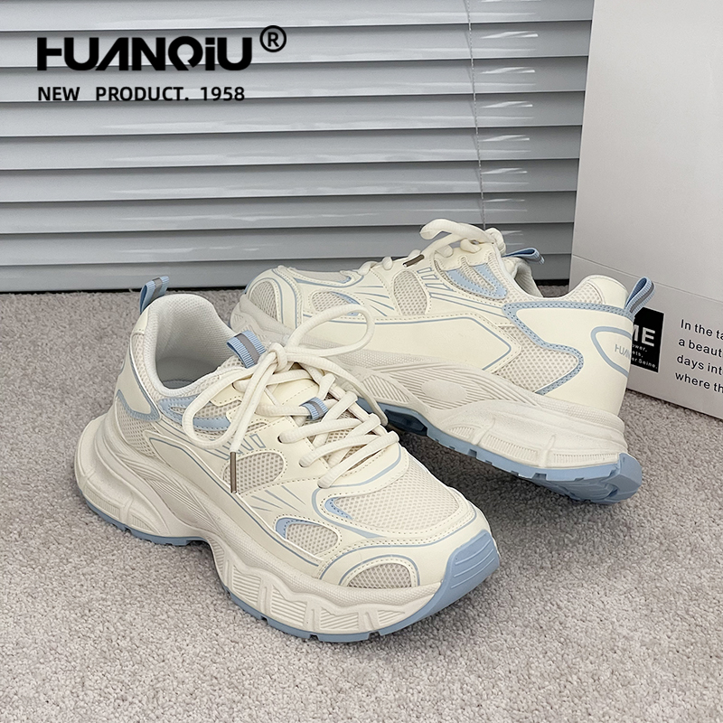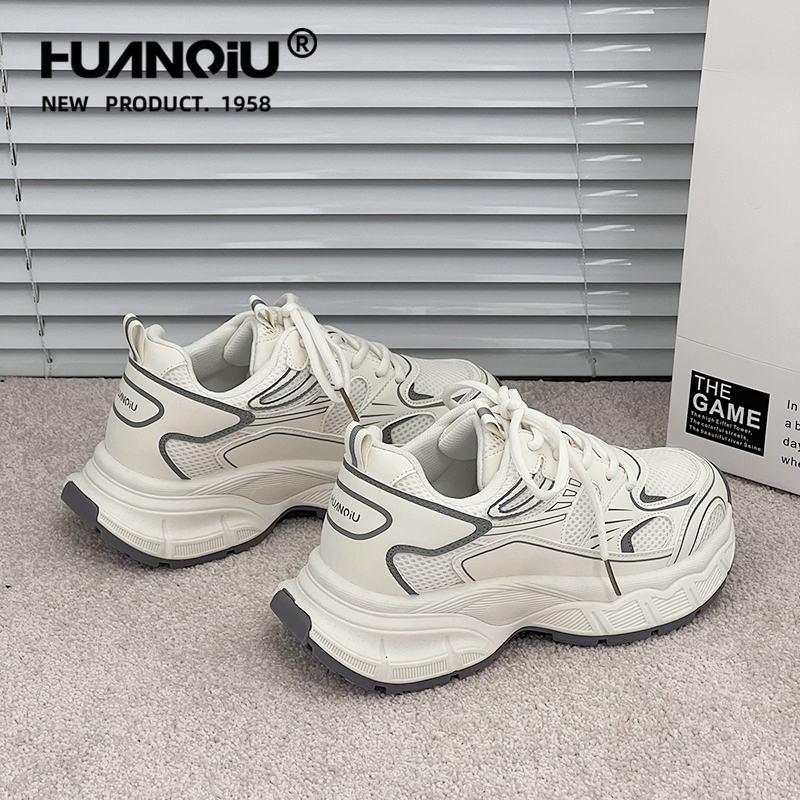 百搭轻便厚底增高运动鞋 新款 子女2025夏季 环球灰色网面透气老爹鞋