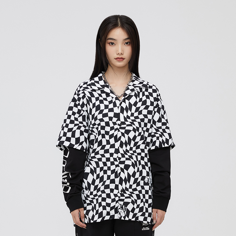 小香风格 男长袖 纹提花休闲翻领宽松衬衣509915 衬衫 三福2025冬季
