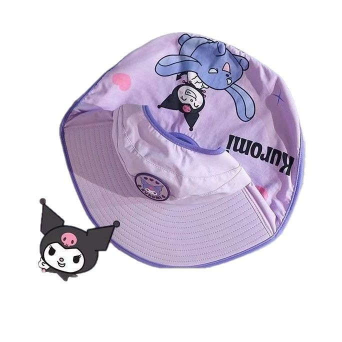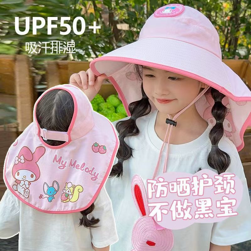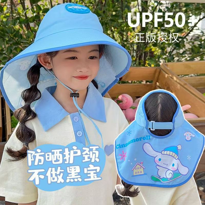 三丽鸥儿童遮阳帽女童防紫外线防晒太阳帽男童宝宝渔夫帽披肩帽子