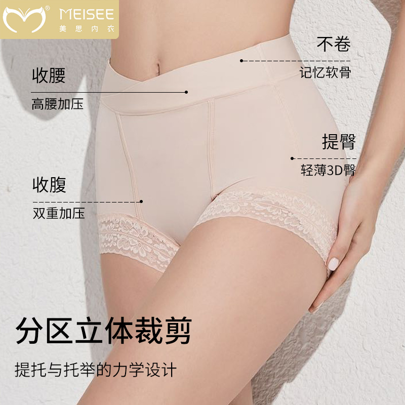 抗菌提臀薄款 美思内衣女士内裤 2025新款 透气高腰收腹三角短裤 女款