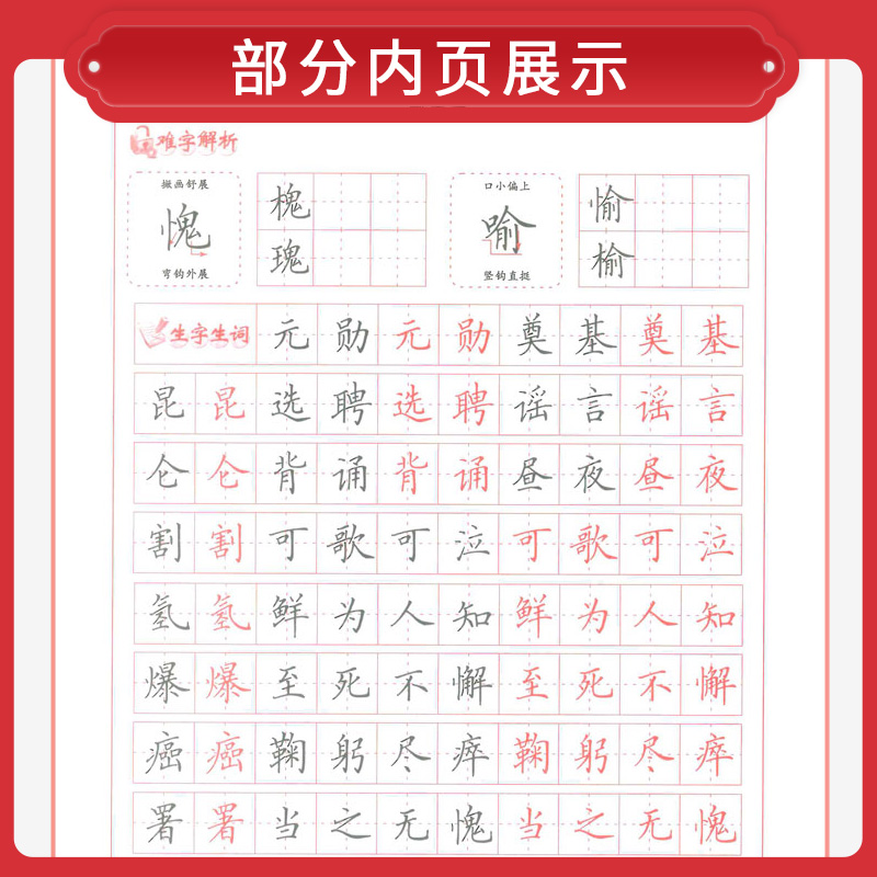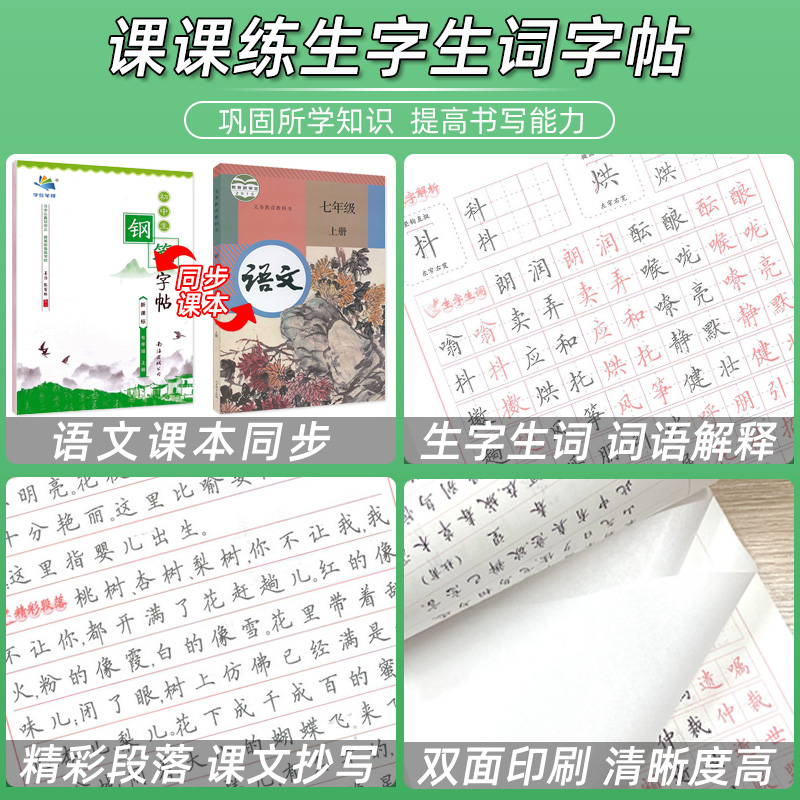 临摹纸透明纸 8古诗词课本同步楷体姜浩张百林字在笔得南海出版 字在笔得练字帖七八九年级上下册语文初中生钢笔字帖统编版 人教7