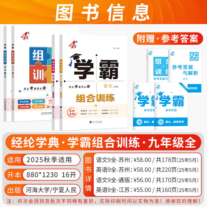 2025秋初中学霸组合训练语文英语译林版 苏州专版 通用版 苏科版 学霸题中题同步课时提优图书江苏专用 七八九年级上下册人教版 江苏版