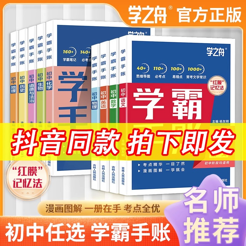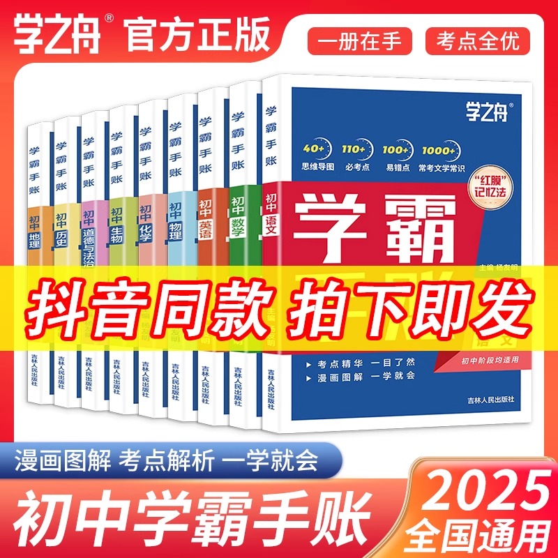 学之舟 初中学霸手账中考语文数学化学生物英语历政地初一二三复习资料知识清单同步讲解考点学霸必备考点精炼快速提分 2025新版