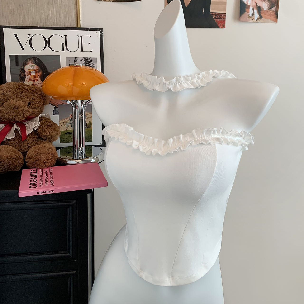 显瘦一体式 纯欲甜辣格子提花抹胸背心女修身 带胸垫百搭 新款 夏季