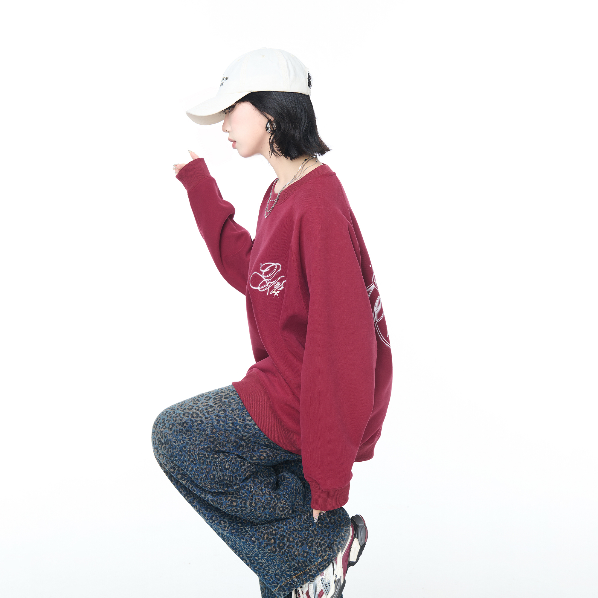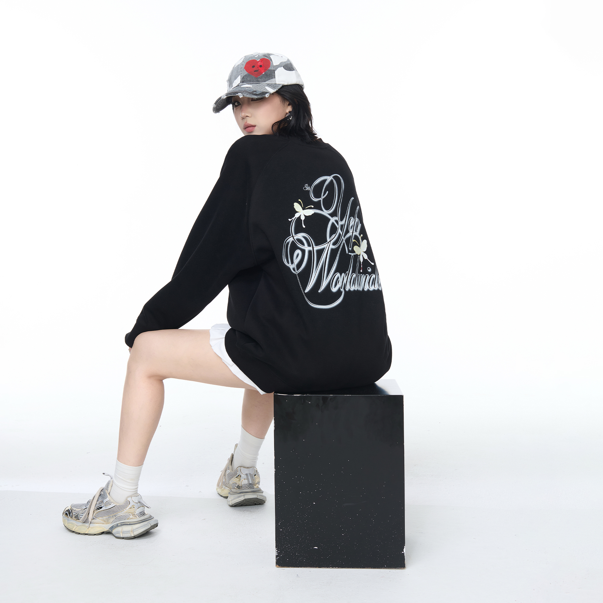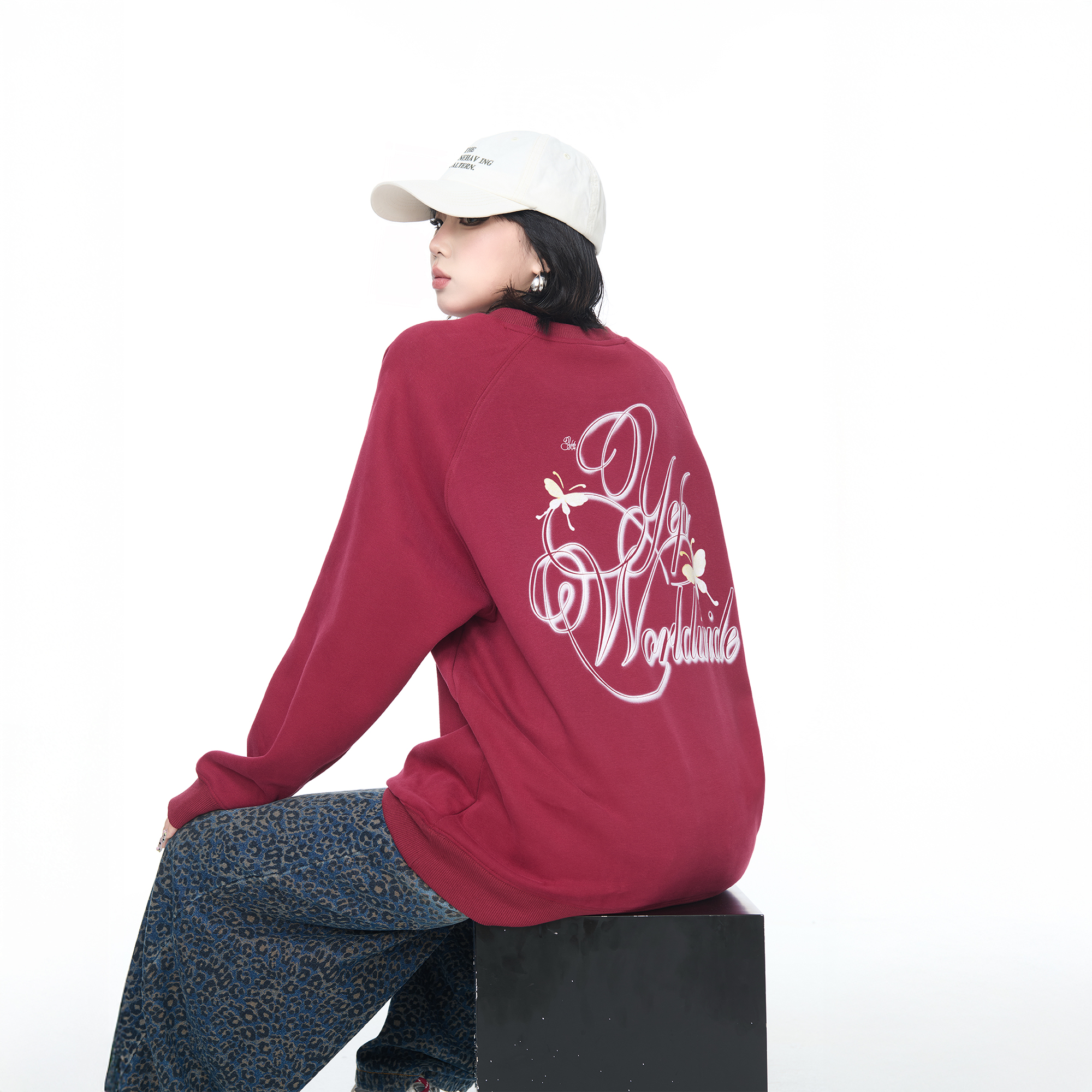 上衣 宽松外套情侣款 YEP美式 潮牌蝴蝶字母印花圆领卫衣女春秋新款