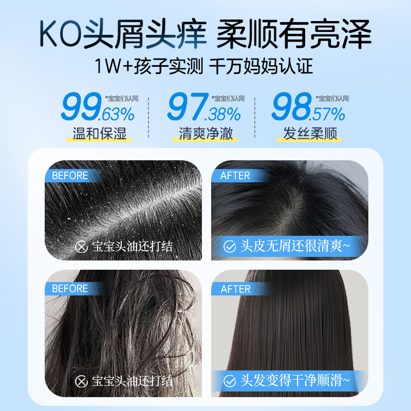 贝德美儿童洗发水儿专用0 15宝宝控油去屑蓬松青少年中大童洗头膏