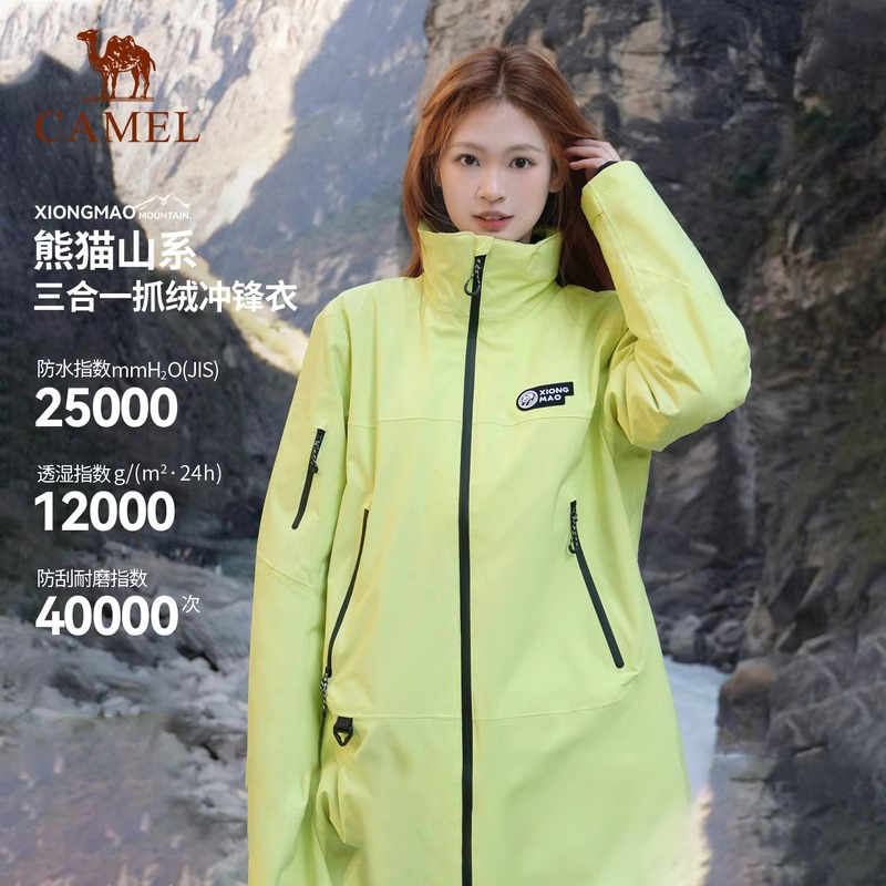 骆驼户外北风冲锋衣男抓绒三合一外套女防风防水旅游徒步登山服