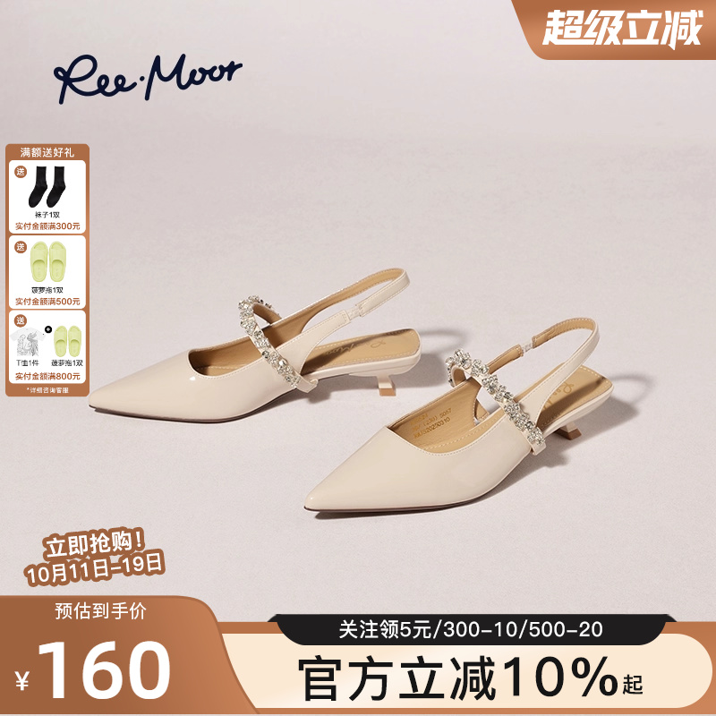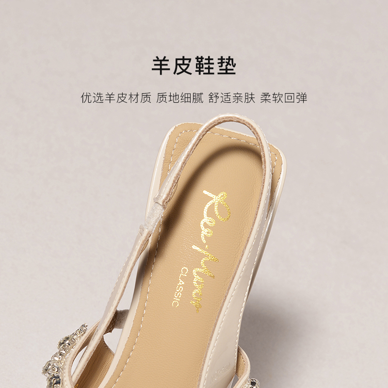 女细跟后空玛丽珍单鞋 REEMOOR睿慕2025春夏新款 水钻尖头包头凉鞋