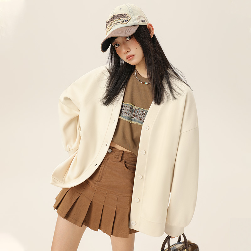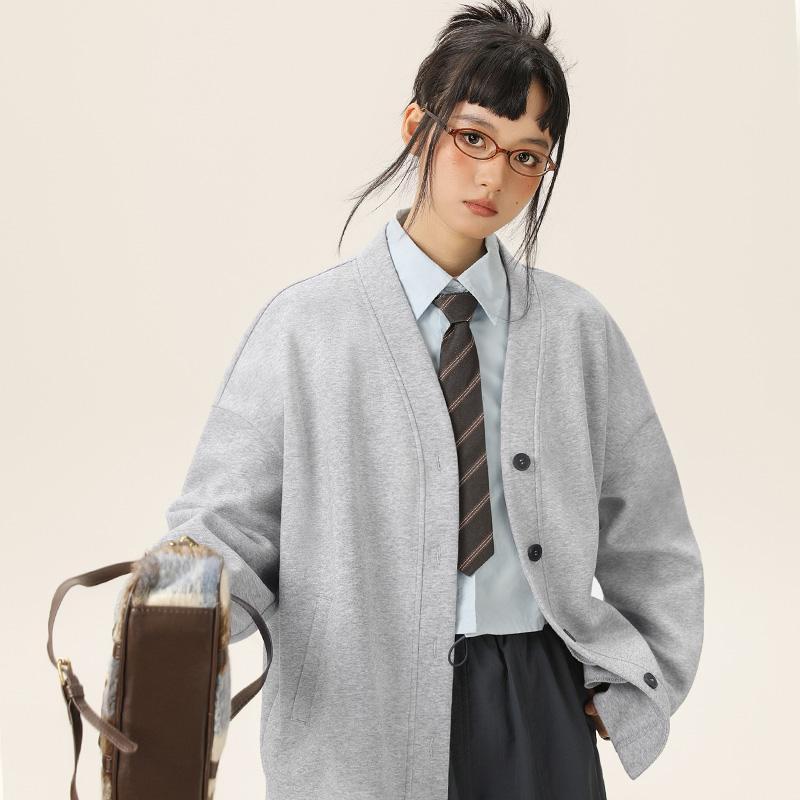 上衣PC 胖mm慵懒风开衫 雪中飞v领卫衣外套女早秋2025新款 宽松大码