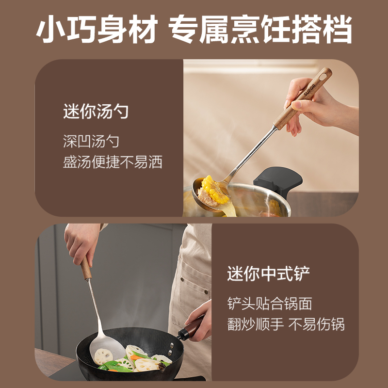 苏泊尔316L不锈钢锅铲家用一人食迷你铲小号铁铲炒菜铲子辅食铲