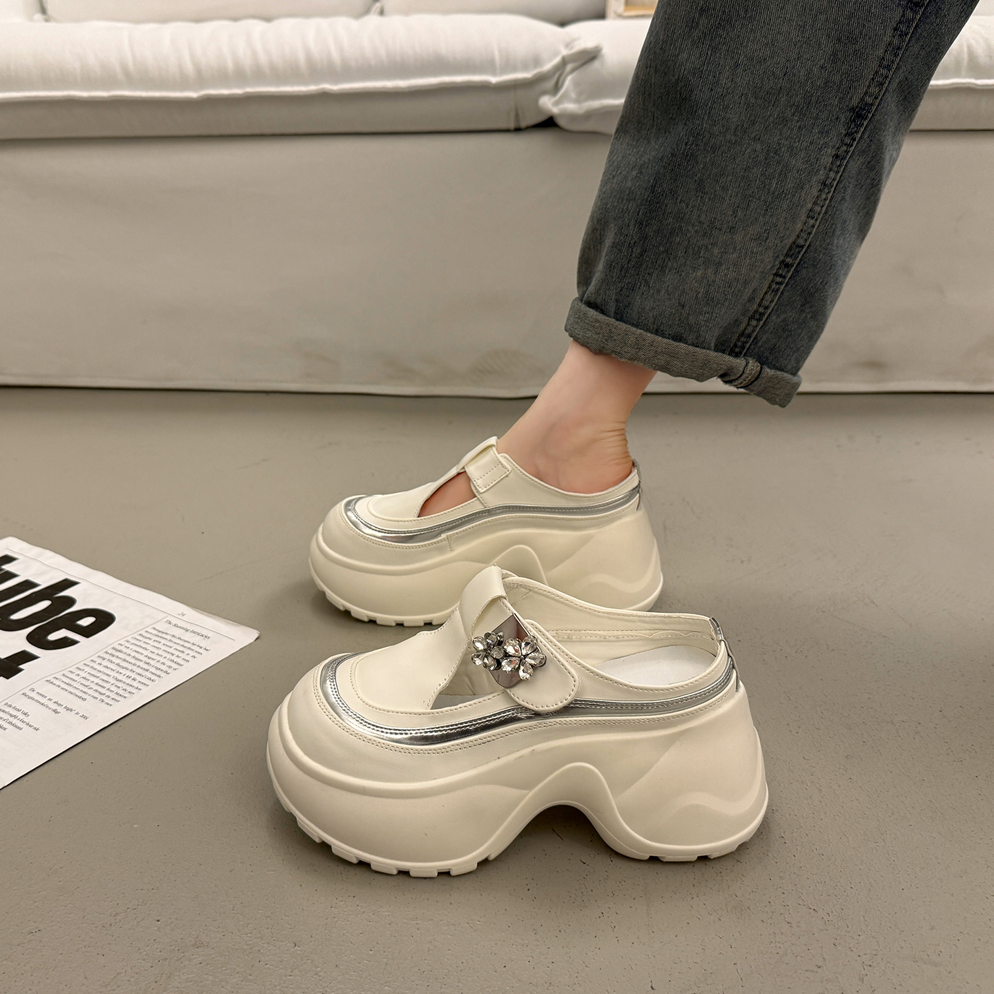 周雨彤同款 2代包头穆勒女拖E4T1DCH预 百丽厚底增高花生吐司勃肯鞋