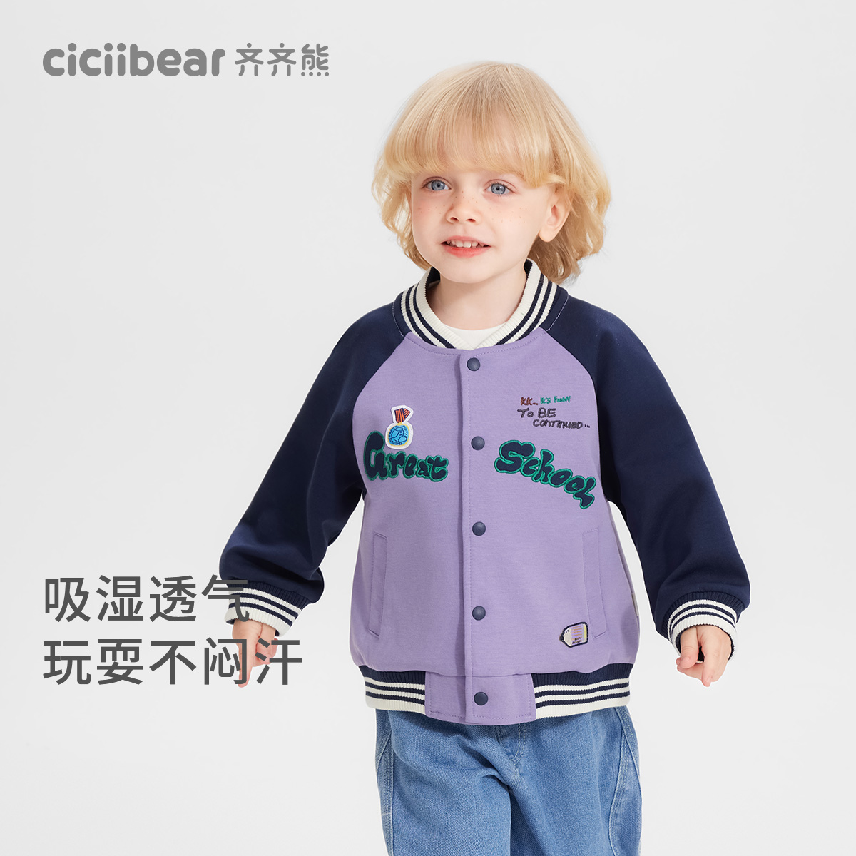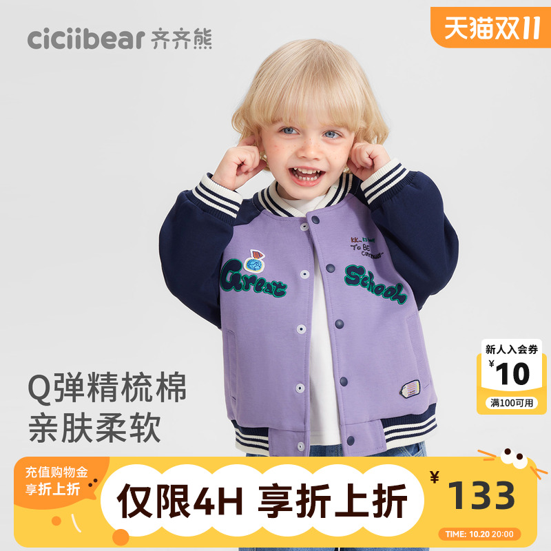 2025新款 齐齐熊男童棒球服外套儿童春秋款 宝宝户外撞色 精梳棉