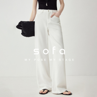 白色拖地裤 2025新款 蓝色流行高腰 女冬抓毛莱赛尔阔腿裤 森马牛仔裤