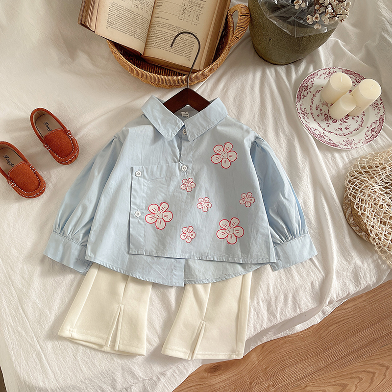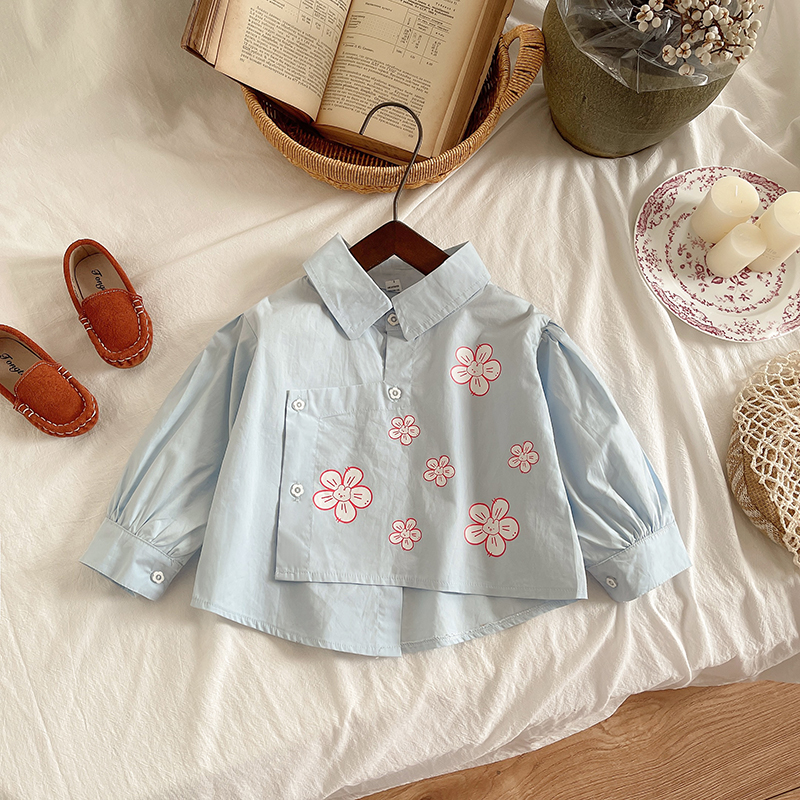 高智感长袖 蓝色通勤衬衫 TeenieWeenie小熊秋季 衬衣 赵露思同款