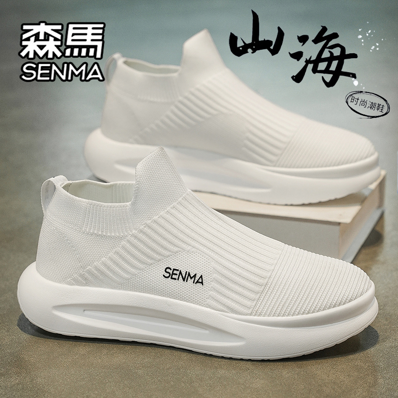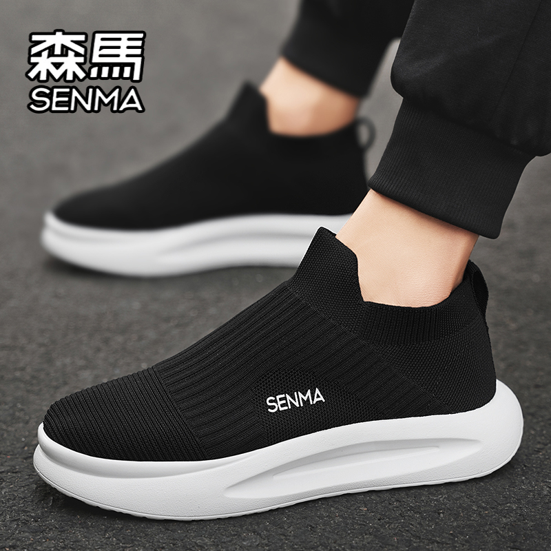 运动休闲轻便跑步一脚蹬袜子鞋 森马男鞋 男士 飞织网面透气网鞋 夏季