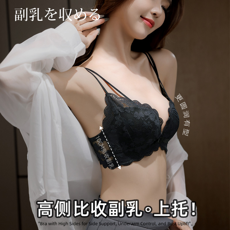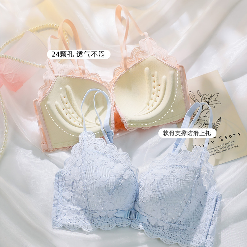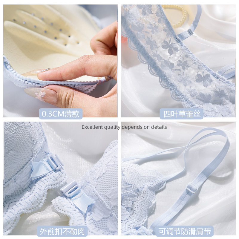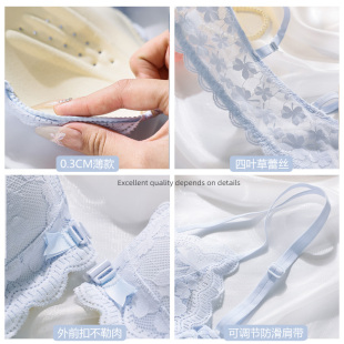 好奇蜜斯前扣内衣女聚拢小胸性感蕾丝薄文胸罩套装 美背纯欲夏法式