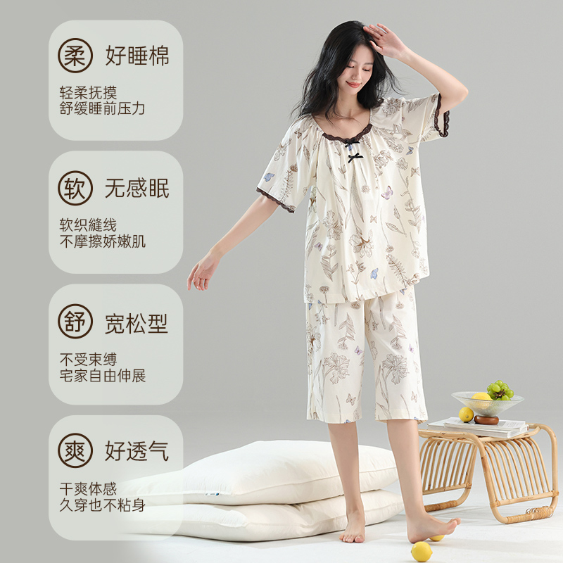 2025新款 套装 家居服可外穿 带胸垫长袖 都市丽人纯棉睡衣女春夏秋款
