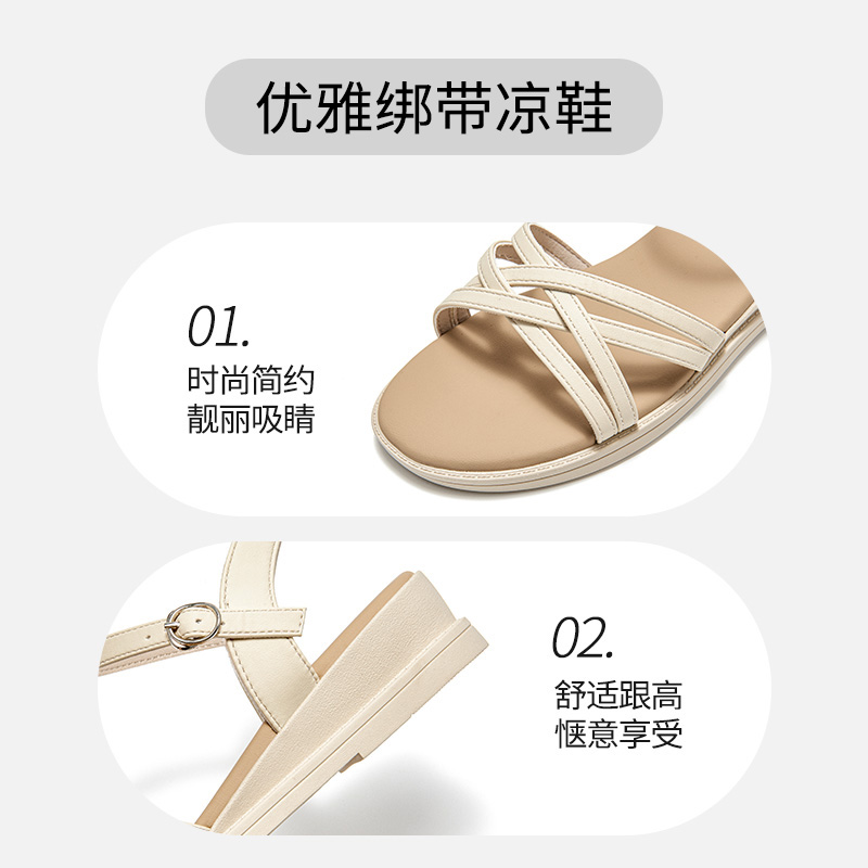 新款 2025夏季 坡跟中跟一字扣结构变化X0014 女鞋 大东一字带凉鞋