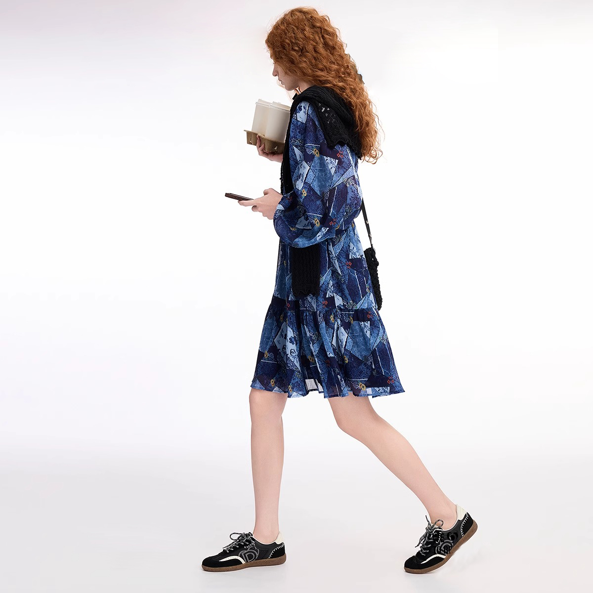 胖mm连衣裙通勤设计感高端印花宽松 2025年大码 爵莱菲春装 女款