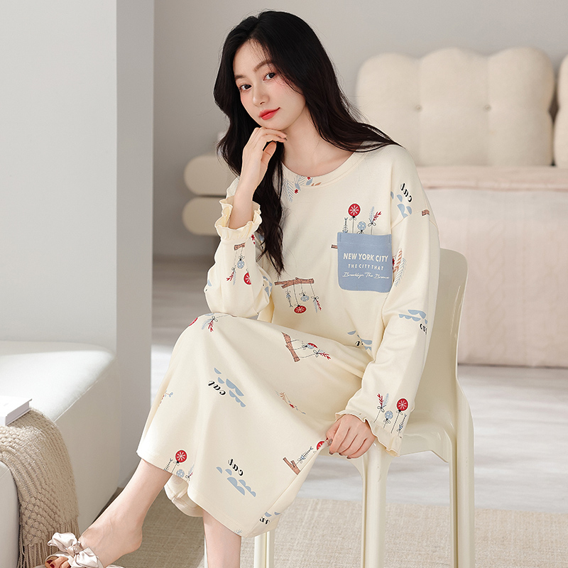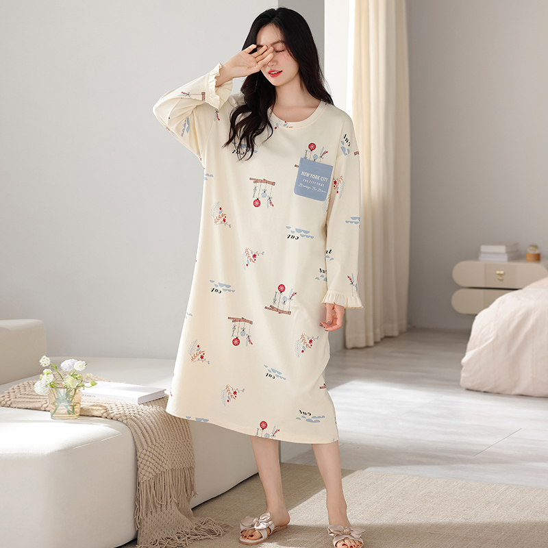 幸棉法式 睡裙女秋超仙睡衣家居服露背高级感连衣裙宽松长裙子 长袖