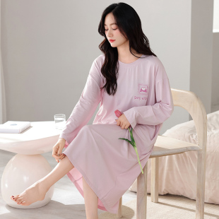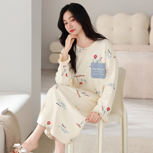 连衣裙休闲卡通睡衣女士家居服2025新款 中长款 纯棉短袖 睡裙女夏季