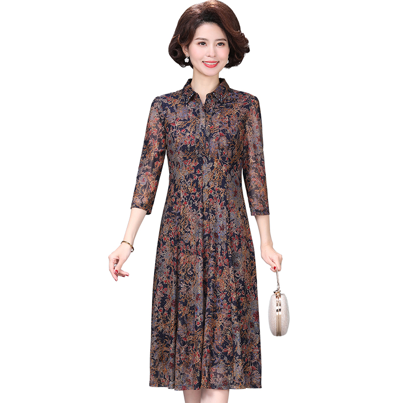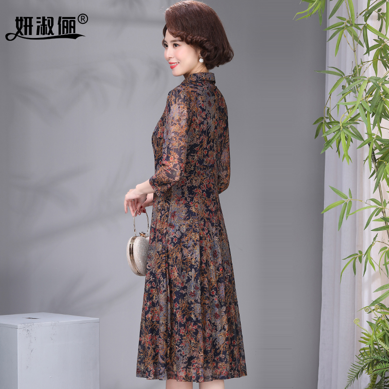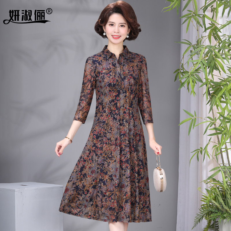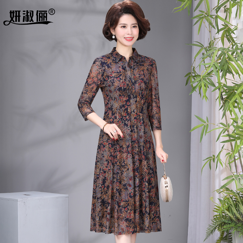 领印花裙七分袖 中老年妈妈连衣裙夏新款 2025台湾纱阔太太气质衬衫
