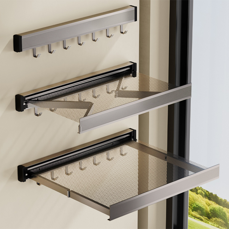 浴室伸缩置物架免打孔折叠毛巾架卫生间放衣服浴巾架隐形收纳挂架