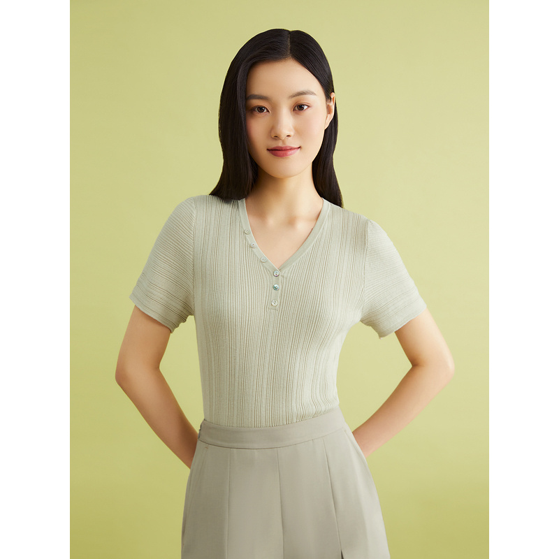 针织衫 条纹短袖 长袖 开衫 毛衣外套 RARN2025秋装 两件套圆领修身 新款