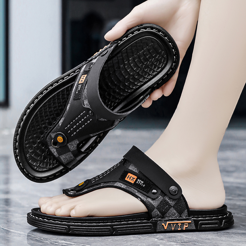 户外拖鞋 沙滩夹脚凉拖两穿开车防滑耐磨2025新款 男外穿夏季 皮凉鞋