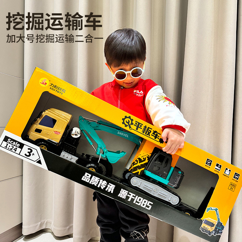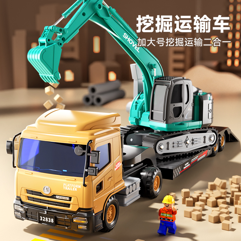 超大号挖掘机运输车大卡车子套装 组合儿童汽车玩具车模型男孩3岁2