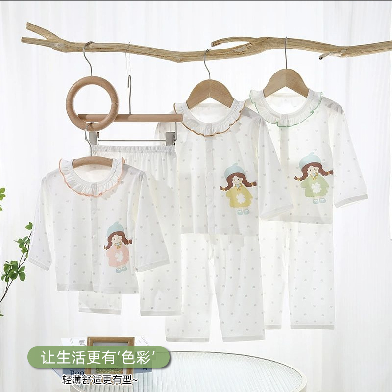 长袖 薄款 空调服女宝宝睡衣幼儿家居服 夏季 婴儿莫代尔衣服分体套装
