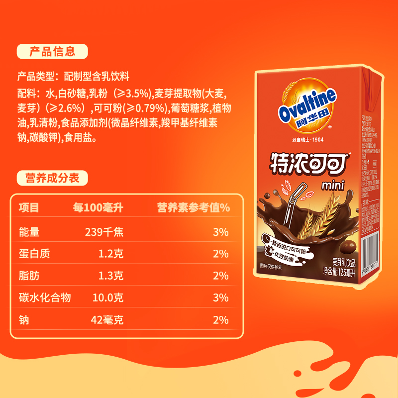 阿华田特浓可可低脂早餐奶儿童早餐奶学生儿童营养巧克力饮品