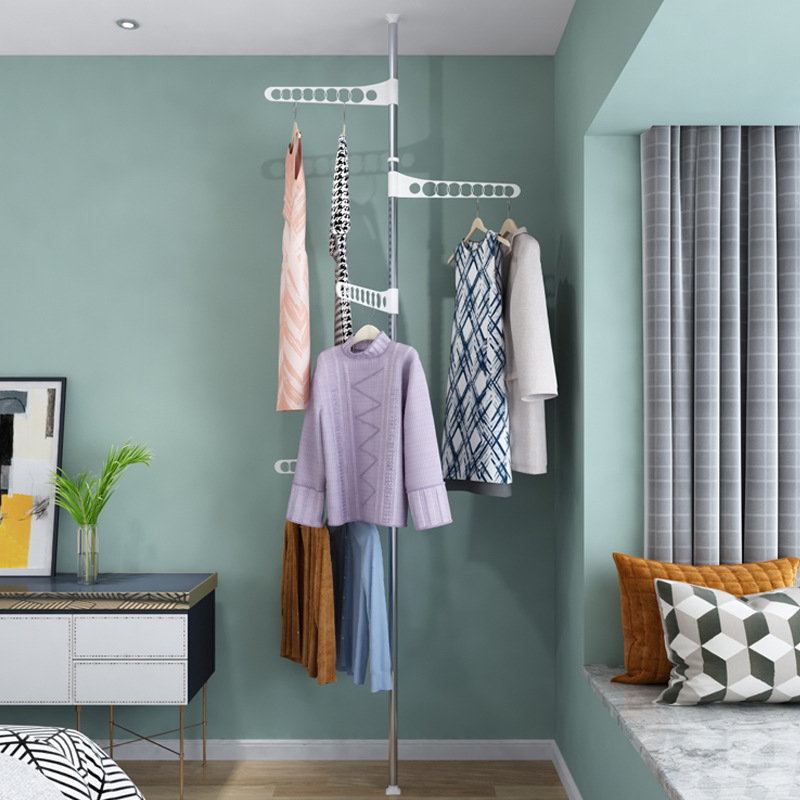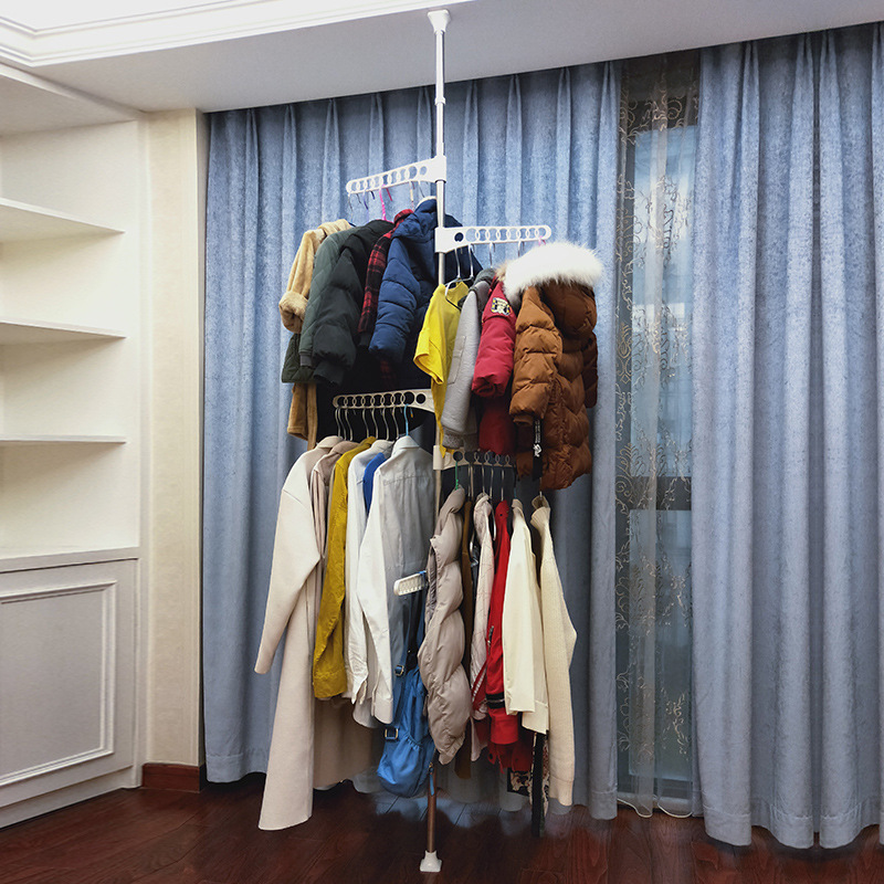 顶天立地晾衣架落地卧室挂衣架阳台晾衣杆伸缩杆室内家用晒衣创意