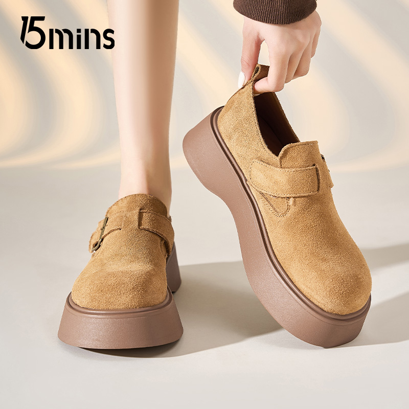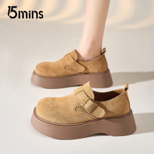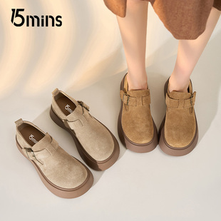 一脚蹬全包真皮复古单鞋 15mins厚底勃肯鞋 增高女鞋 新款 女2025秋季