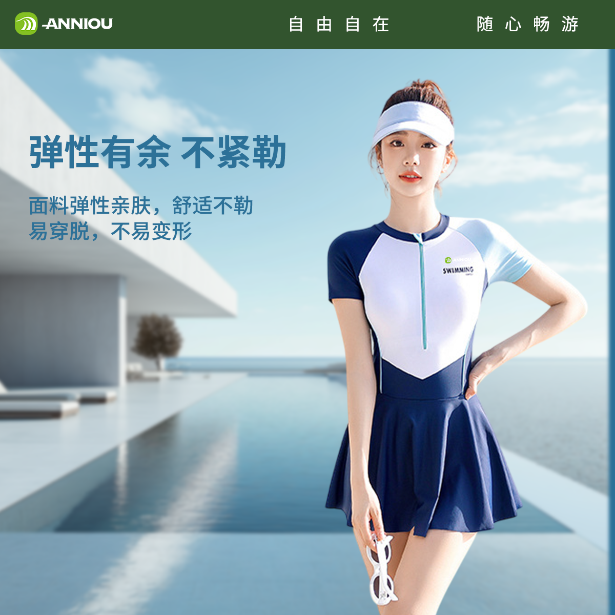 连体泳衣专业显瘦保守温泉游泳馆专用泳装 安踏小蛮腰 泳衣女爆款