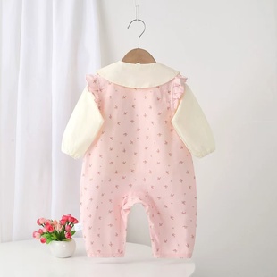 连体洋气一岁外出春秋季 套装 幼儿 两件套婴儿衣服背带裤 女宝宝春装