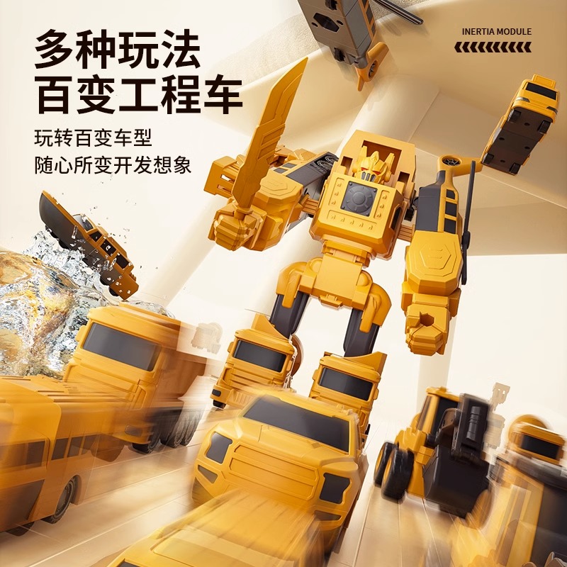 磁力拼装 玩具车男孩工程车变形机器人小汽车儿童益智宝宝3到6岁1
