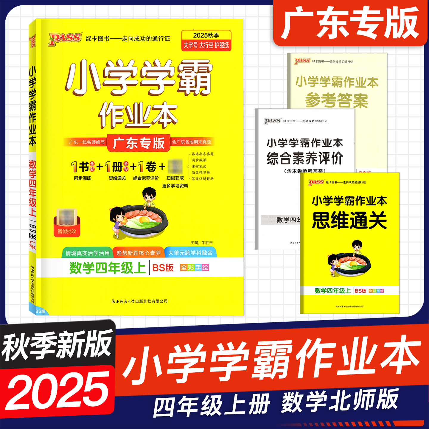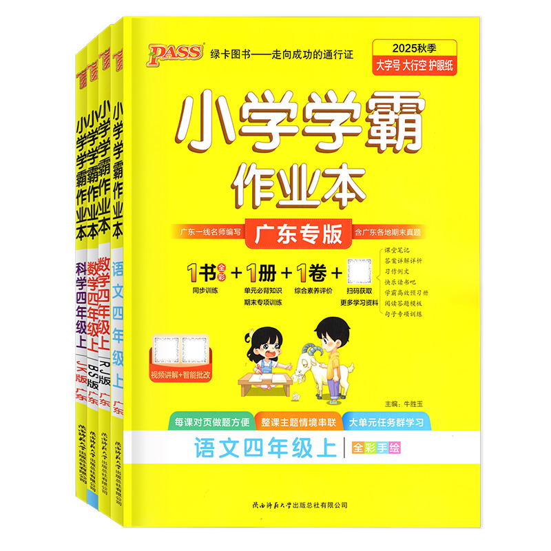 2025秋新版 人教北师教科外研沪教广州专版 小学学霸作业本 4上下语文数学英语道德与法治科学 PASS绿卡图书 四年级上下册 广东专版