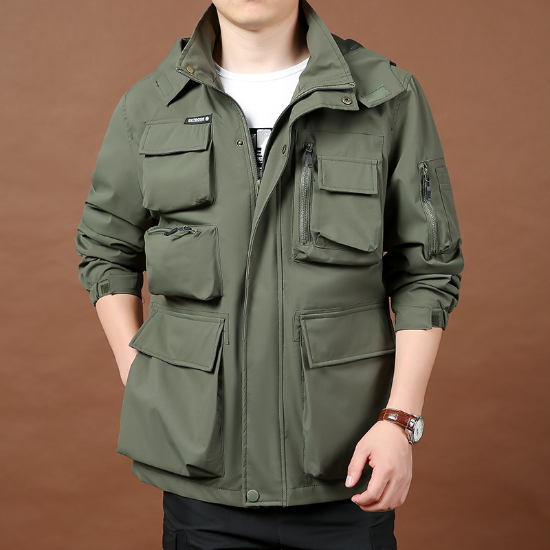 防水运动夹克大码 秋季 宽松机能风外套潮 冲锋衣男士 户外多口袋工装