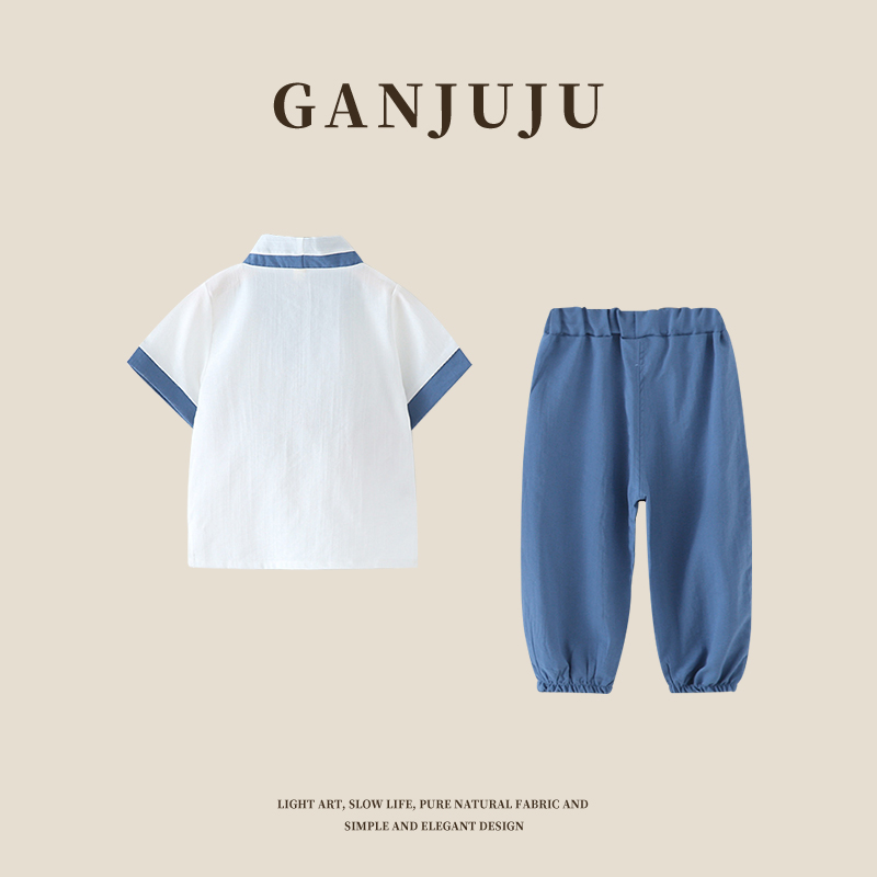 中式 民族风宝宝古装 春秋季 儿童唐装 国学 薄款 中国汉服男童复古套装