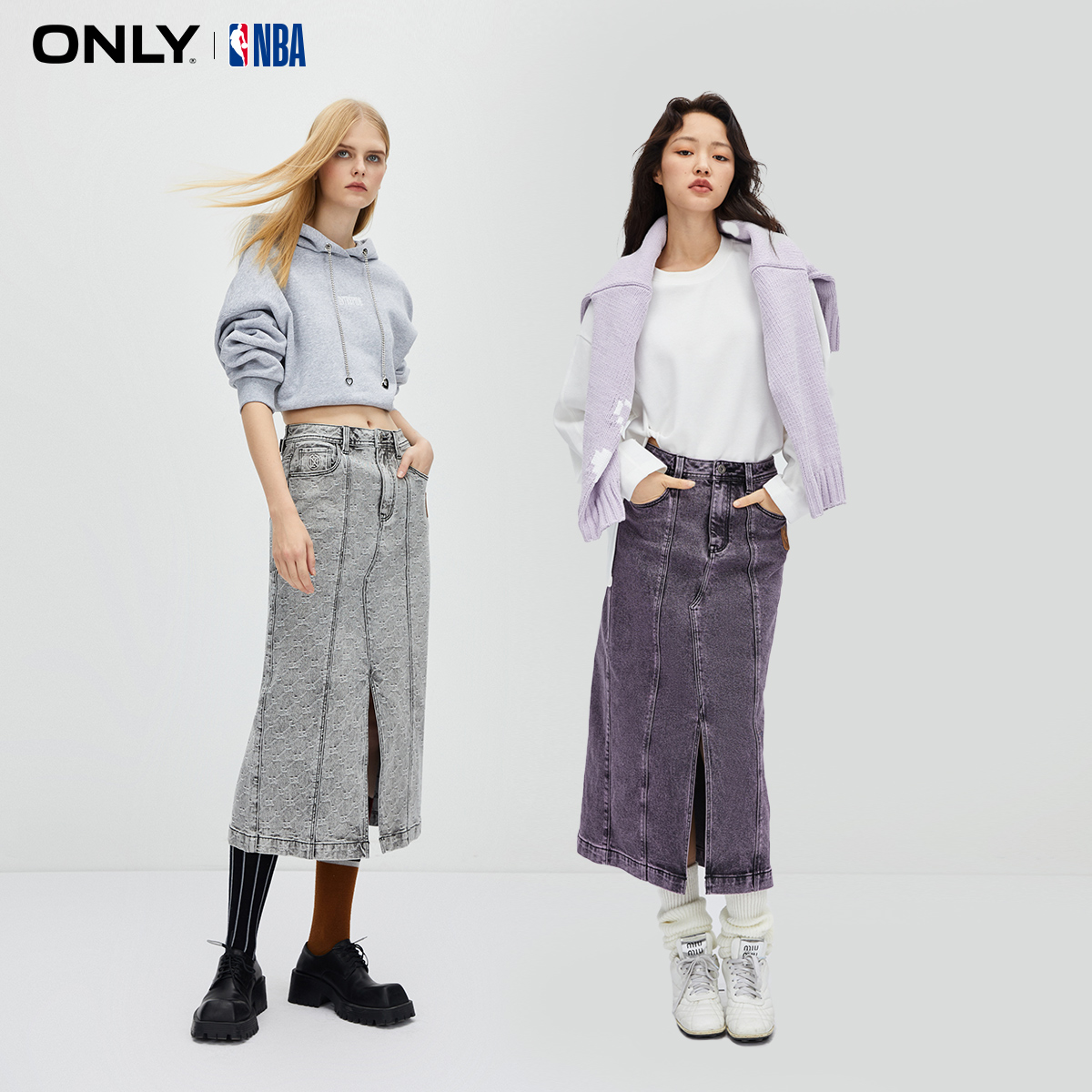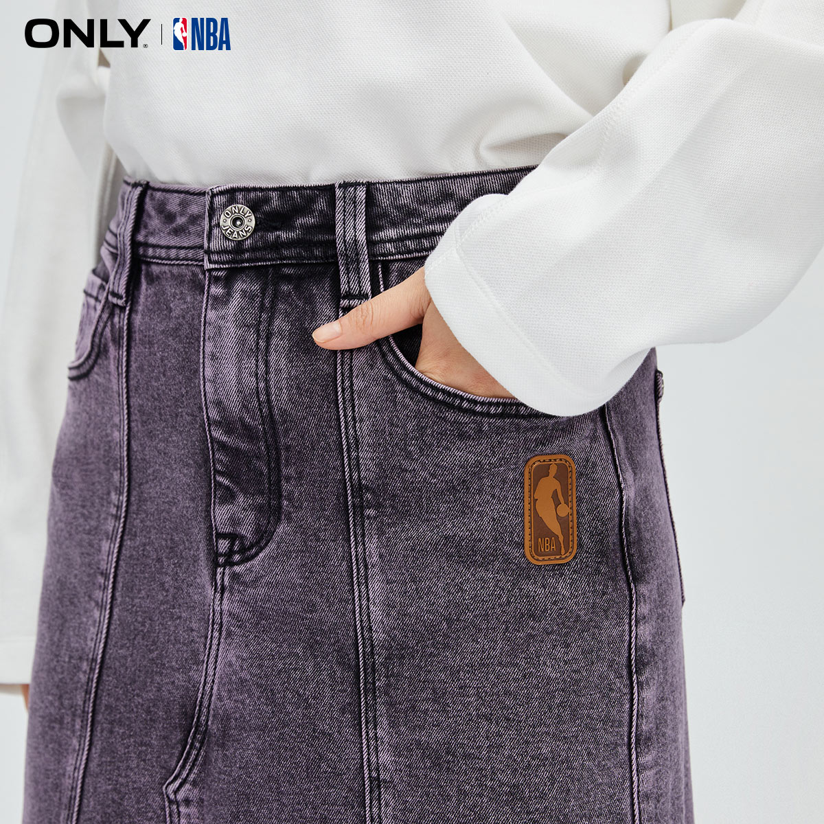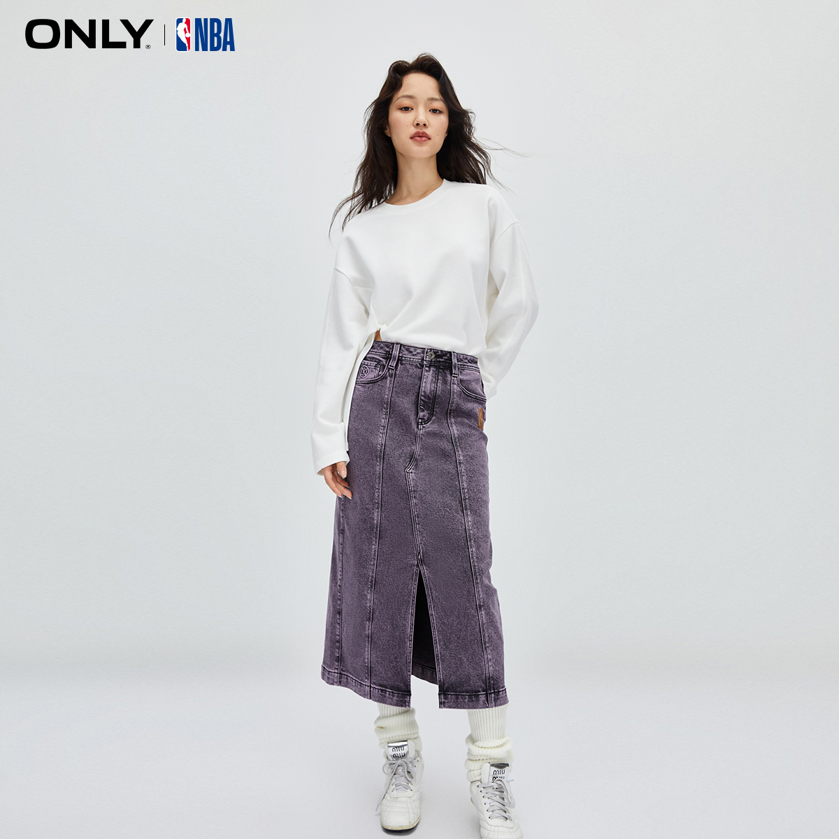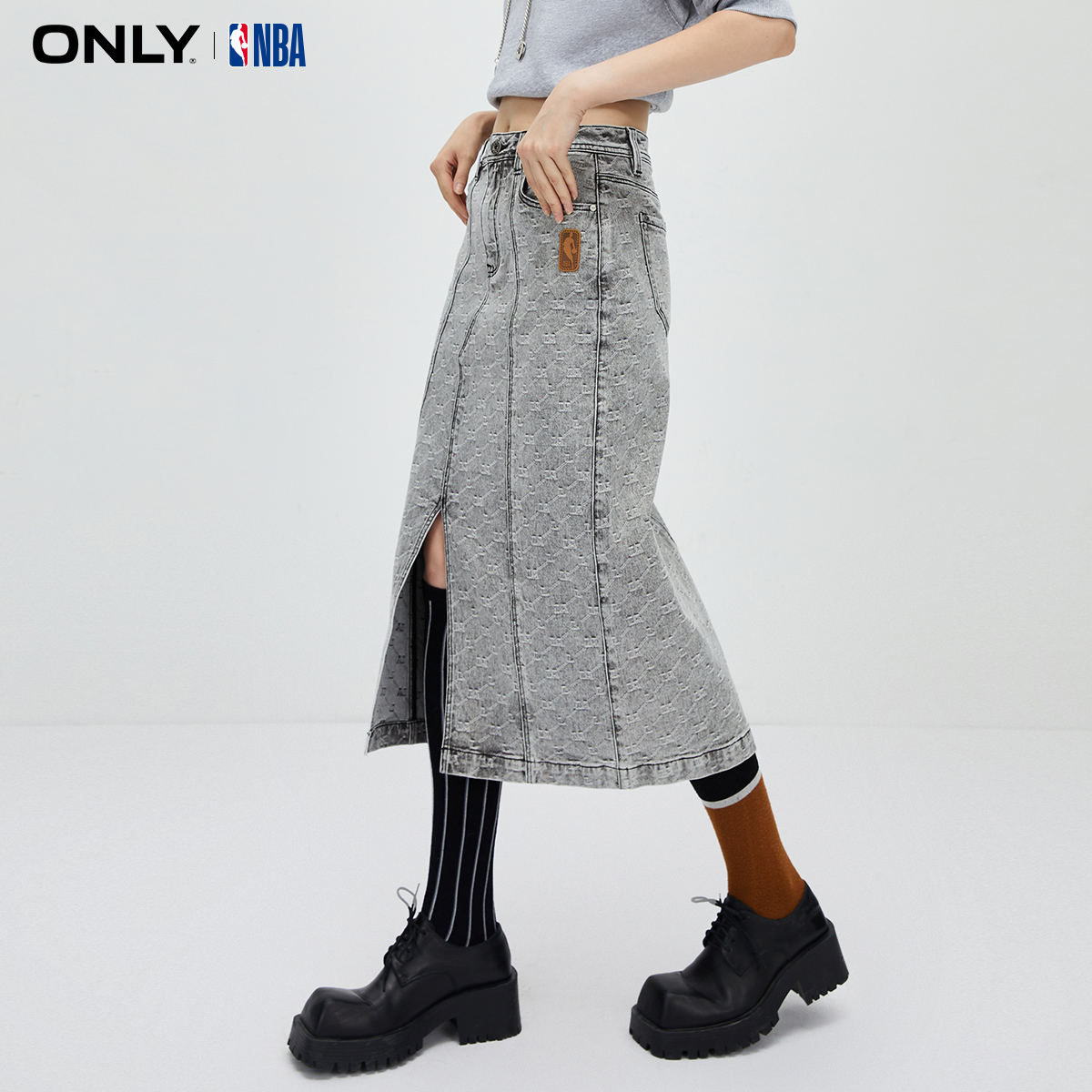 NBA联名款 秋季 高腰中长裙牛仔半身裙女 ONLY奥莱
