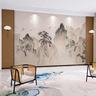 墙纸3d立体中式 古典水墨山水电视背景墙壁布客厅壁纸卧室墙布壁画