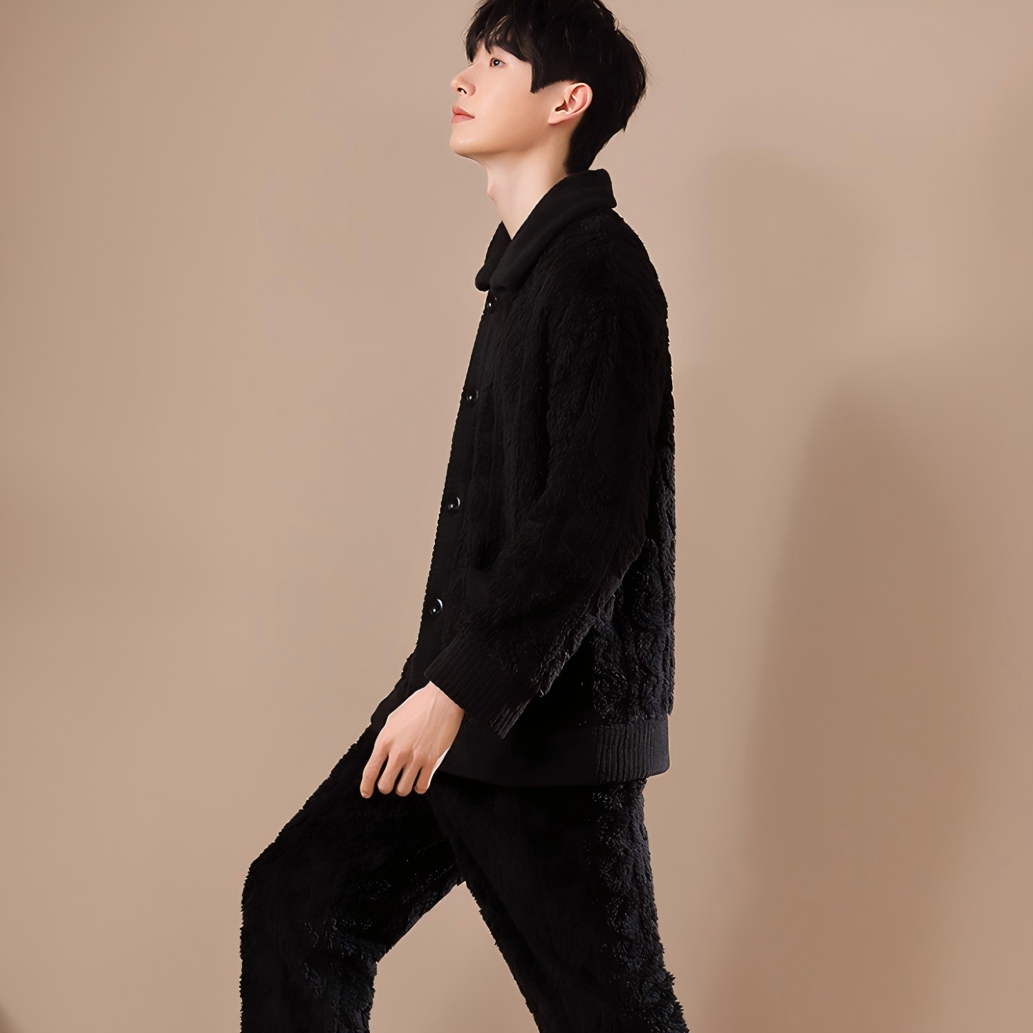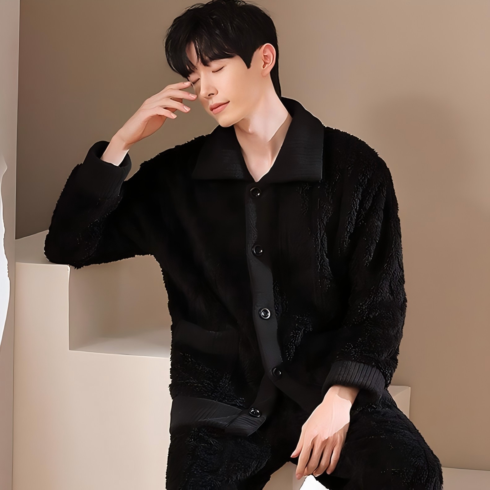 法兰绒家居服套装 秋冬天男士 加绒加厚2024年新款 珊瑚绒睡衣男冬季