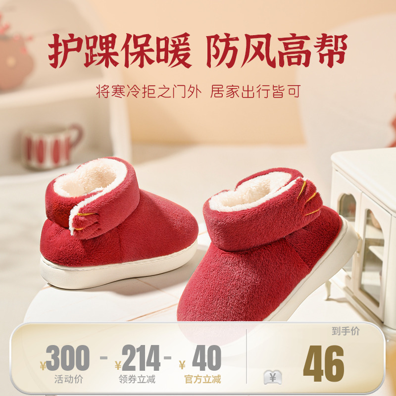 室内软底小孩家居鞋 牧童新年红色宝宝拖鞋 保暖新款 冬季 男 女童棉鞋