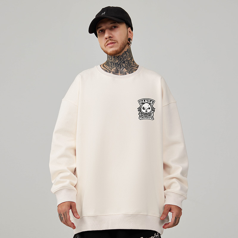 加绒无帽 秋款 oversize熊猫圆领卫衣男潮牌ins重磅加肥加大码 男装