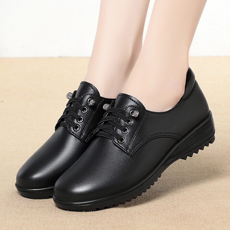 休闲鞋 中老年春秋款 舒适软底妈妈鞋 女平底平跟超女士皮鞋 真皮单鞋