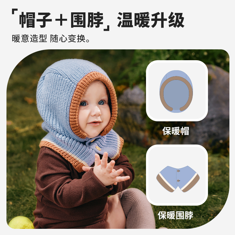 柠檬宝宝秋冬款 保暖防风宝宝羊毛毛线帽 针织帽披肩一体帽2023新款